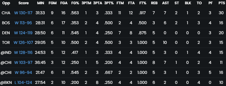 I am once again asking you to buy Dario Saric. His rostered % on yahoo (at the time of writing, 35%) continues to baffle me. As mentioned in my Week 3 article, while he may not be the best 9 cat guy in terms of rank, he comes out as almost a Kyle Kuzma-lite where he’s very very useful in guard heavy builds and/or punt blocks builds. Kerr seems undecided on a long term starter at center and seems to be playing the matchups in regards to whether he starts Dario or Looney. I also previously mentioned that if his steals were to come up to his career average of 0.6-0.7, that would make him way more useful. Well, he’s done that and has managed to improve every single category in addition over the last few weeks. He is inching his way to the top 100, currently ranking 112 on the season, and he’s putting up some awesome stat lines. He needs to be picked up.