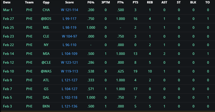 A mainstay buy of my early season buy & sell lists, The Homie is back with a vengeance. With Denver being a little more shallower, the more obvious pickups right now would be Christian Braun (who is likely starting moving forward), and Peyton Watson. But those are obvious, and are the sexier picks here. I really wanted to highlight Dario here because of just how useful he was for the Warriors early in the season. He was a perfect punt blocks big or a big for guard heavy builds averaging 10/5.5/2.6 with 1.5 3PM on 48% shooting in 20 MPG up until about Jan 30, which is when he started to fall out of the rotation. Seeing his playing time dip in the second half of the season was quite the shame, although understandable with the Warriors wanting to prioritize minutes for other players and with the front court being a little crowded. What I really like about this Denver landing spot is his only competition for minutes is the corpse of Deandre Jordan, and Zeke Nnaji, who struggled so much at times that Denver was forced to play DJ.